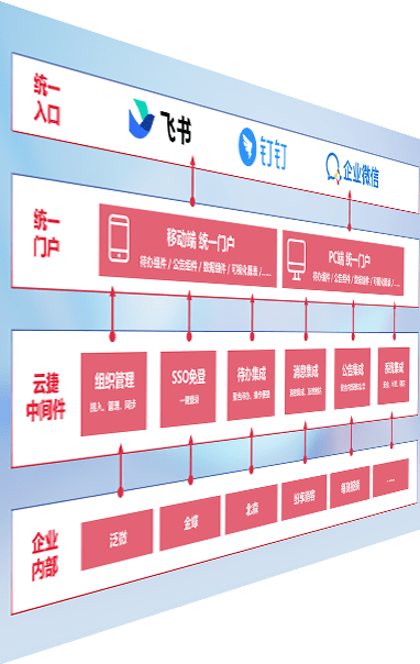对协作平台提供支持服务,,支持企业应用与协作平台对接,,包含组织同步、、、、消息集成、、、待办集成等。。。。支持目前主流的协作平台:钉钉、、企微和飞书。。。